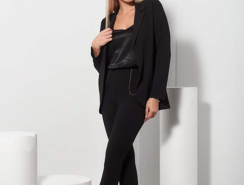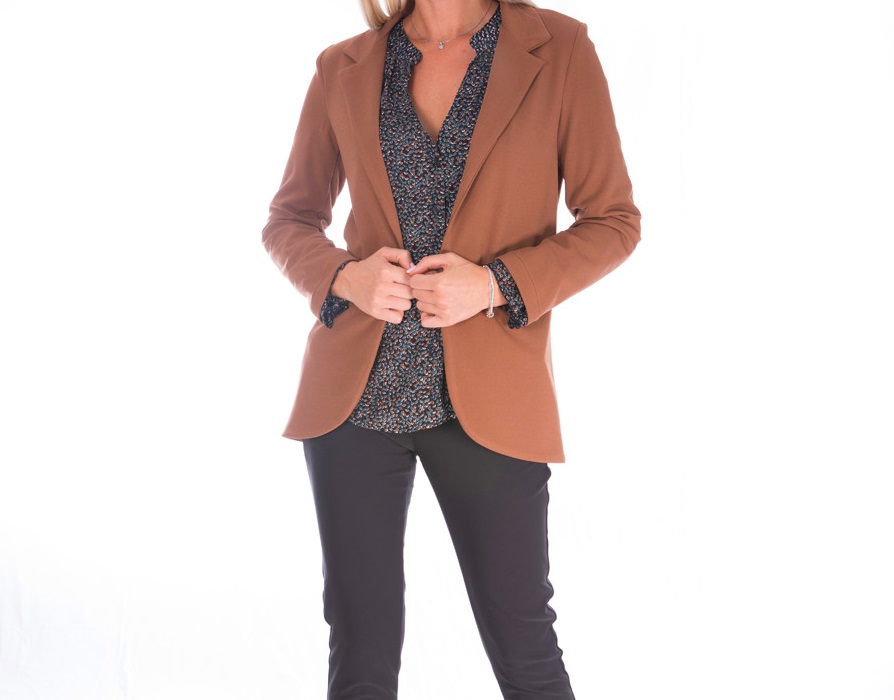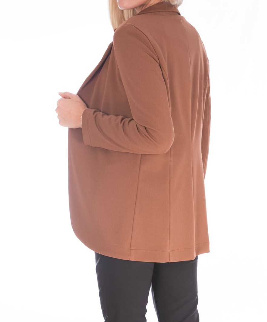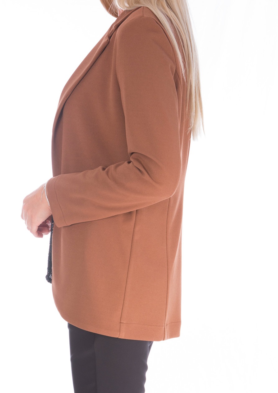 Γυναικείο εντυπωσιακό σακάκι μακρυμάνικο, μεσάτο, άνετο και με κλασικό γιακά. Δεν διαθέτει κουμπιά, τσέπες η φόδρα.