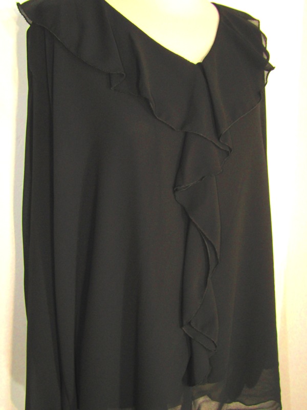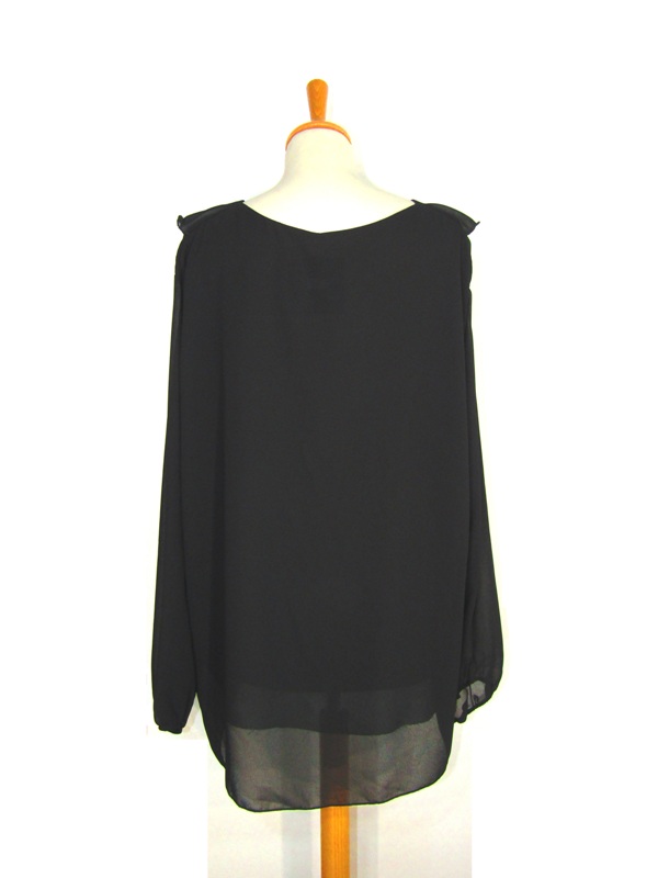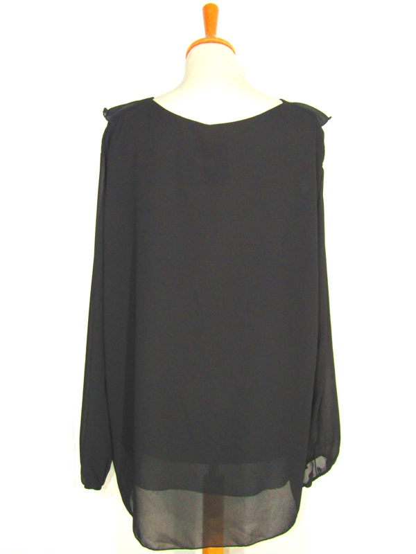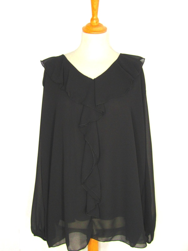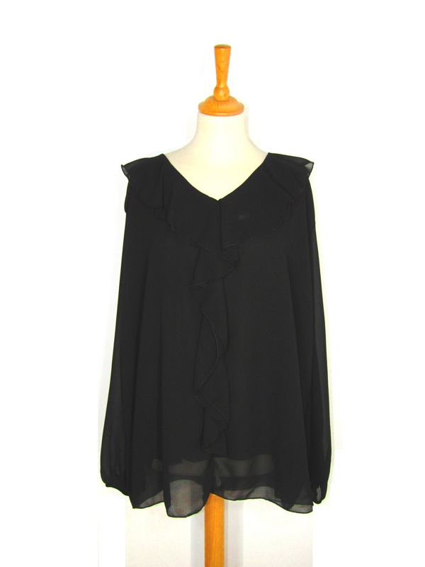 Εντυπωσιακή γυναικεία φαρδιά μπλούζα διπλού υφάσματος, ριχτή, μακρυμάνικη με V ντεκολτέ και διπλό ύφασμα από μεγάλο βολάν που ξεκινάει από τους ώμους και καταλήγει καθέτως σε όλο το μήκος της μπλούζας.